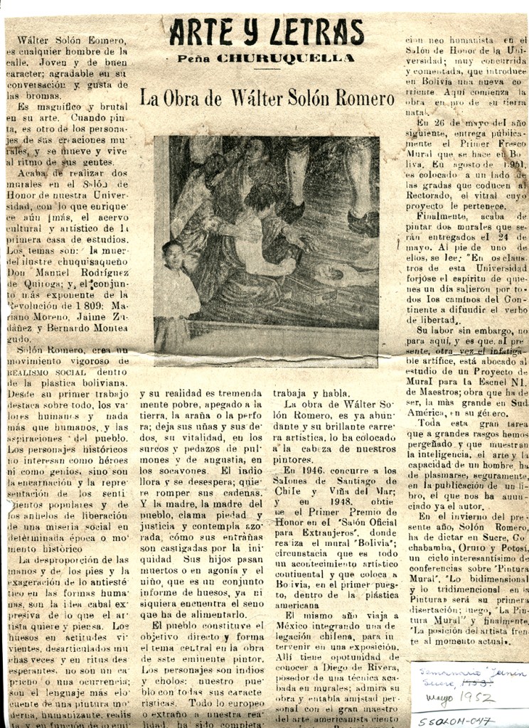 Semanario Junín, Arte y letras, Peña Churuquella, Sucre, mayo, 1952