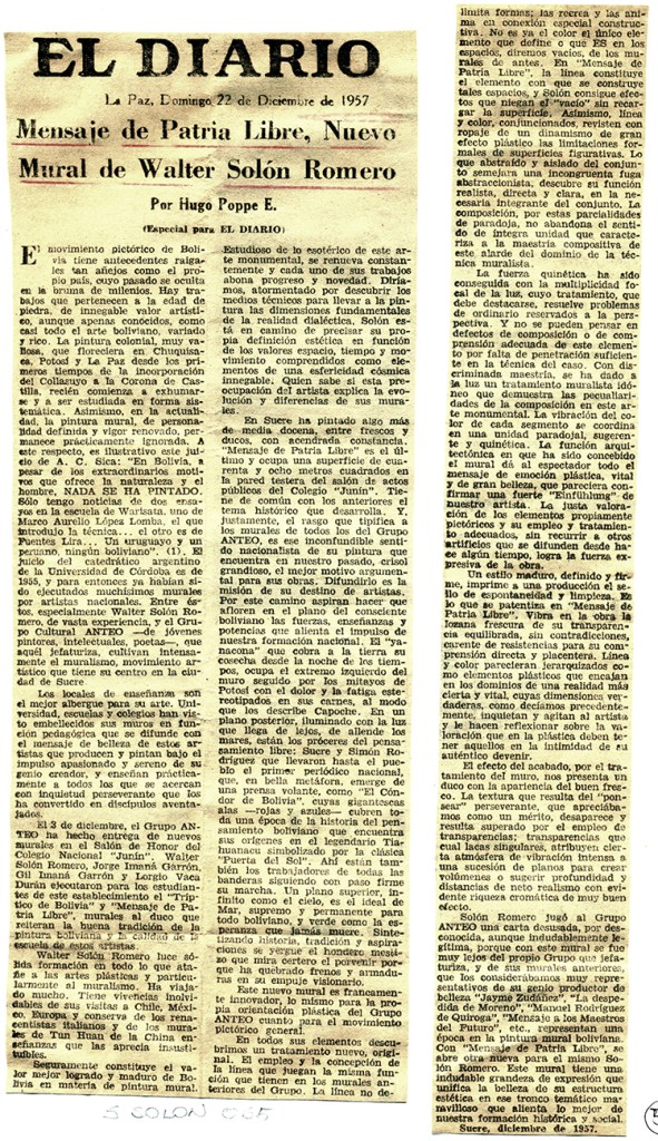 Por: Hugo Poppe E., El Diario (La Paz), 22 de diciembre de 1957.