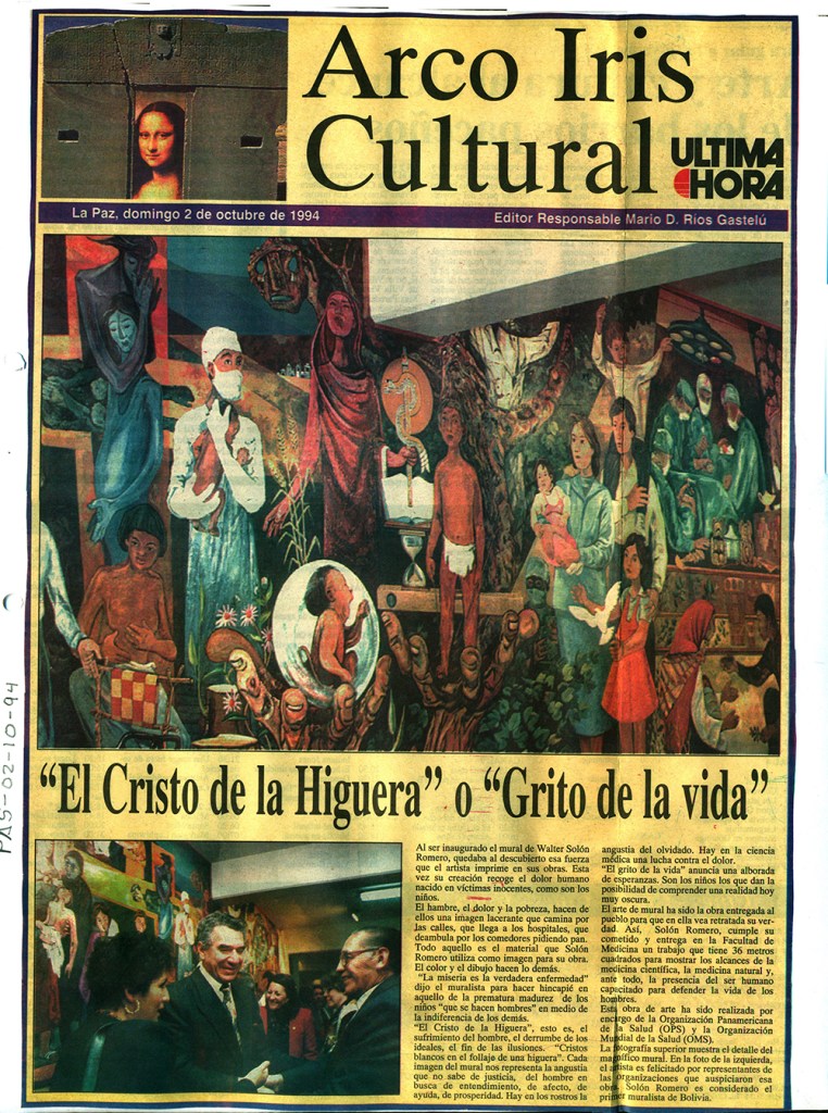 Al ser inaugurado el mural de Walter Solón Romero, quedaba al descubierto esa fuerza que el artista imprime en sus obras. Esta vez su creación recoge el dolor humano nacido en víctimas inocentes, como son los niños.