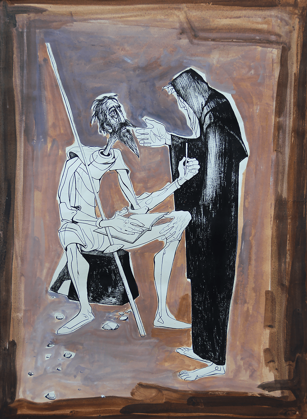 El personaje cervantino siempre fue motivo de fascinación para el muralista. De 1967 es la serie a tinta «El Quijote y San Francisco», que reproduce hipotéticos diálogos entre los dos personajes.
