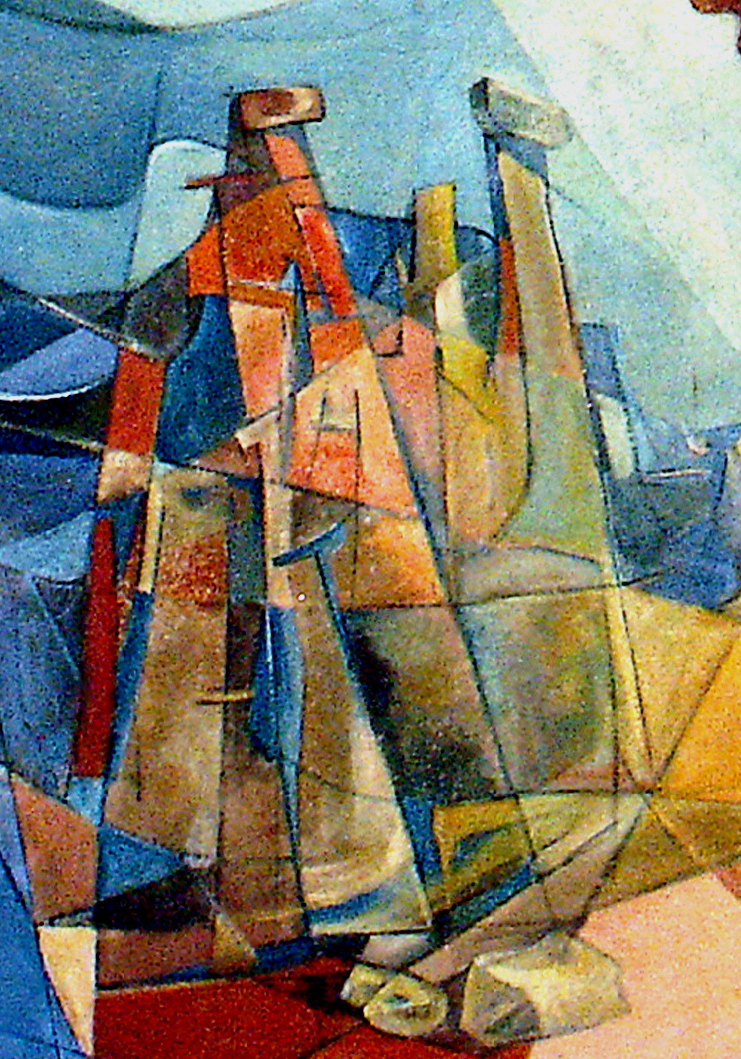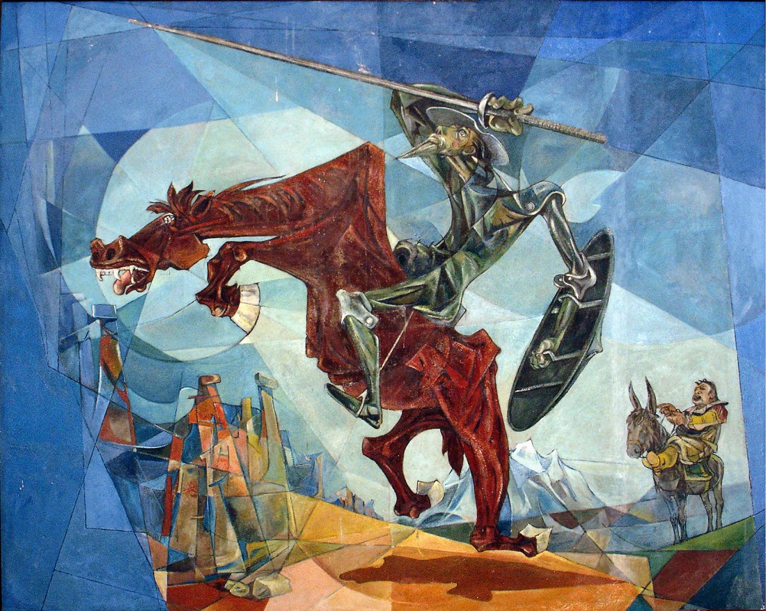 Este mural relata el arribo de Don Quijote a la ciudad del Illimani. La perspectiva dinámica con grandes protagonistas que saltan de las paredes destaca en ambos murales.