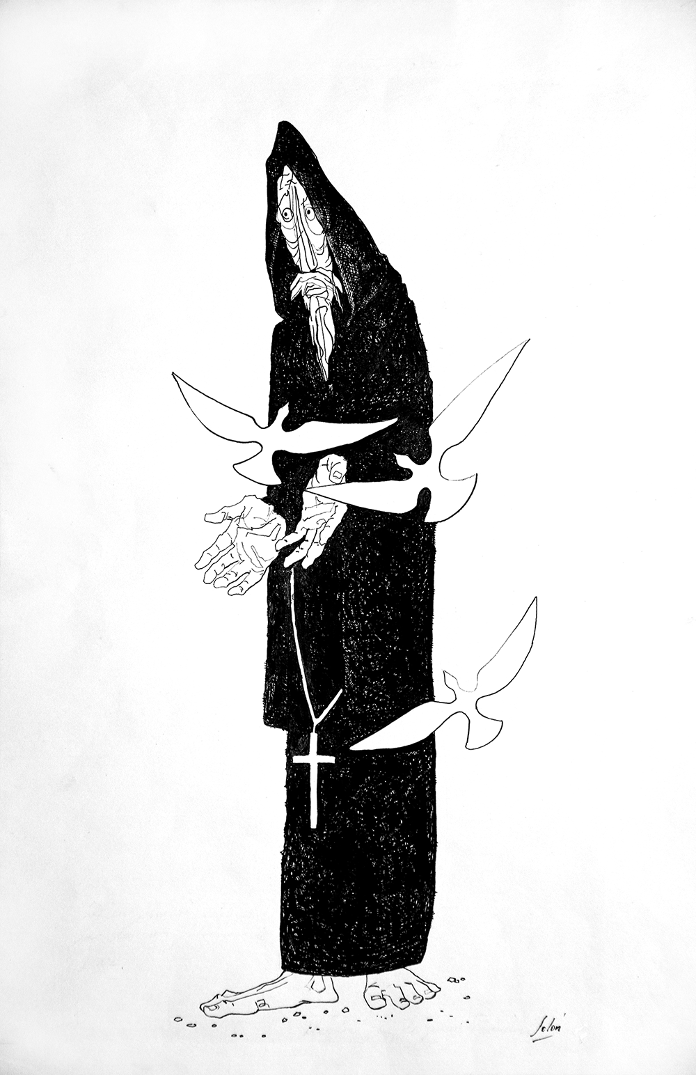 In this series we see a Don Quixote of peace chatting with Saint Francis of Assisi on justice, freedom, faith, purity and human hope. For Solón, Saint Francis and Don Quixote are very much alike.