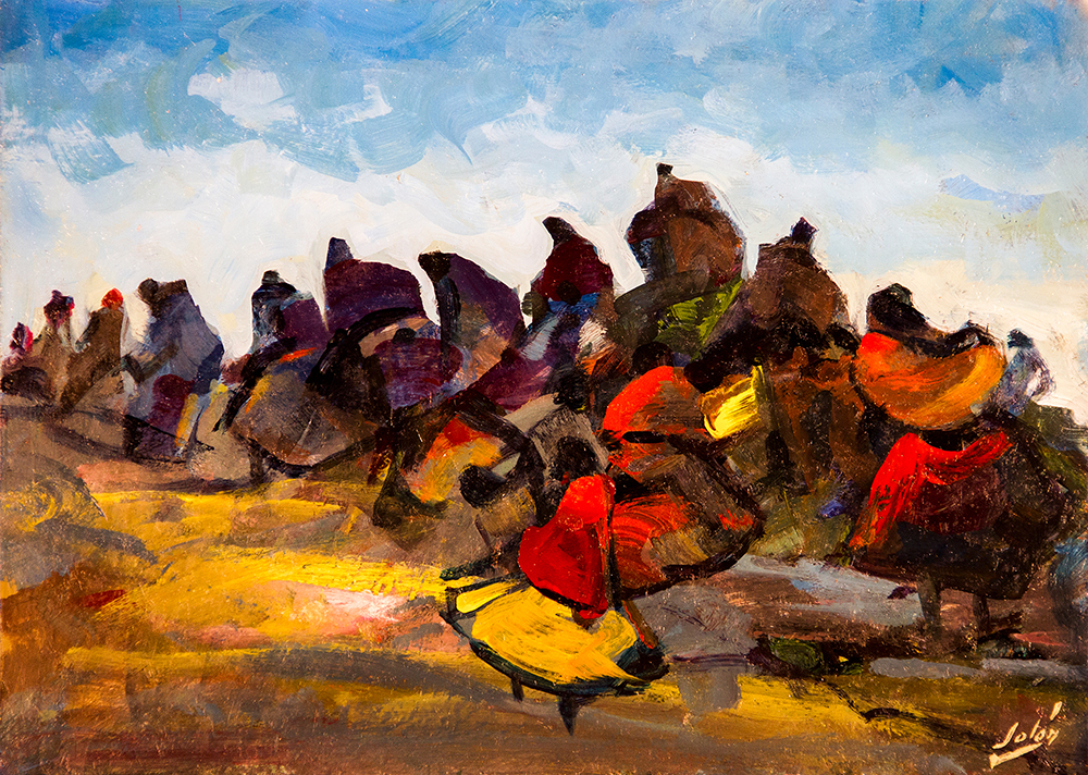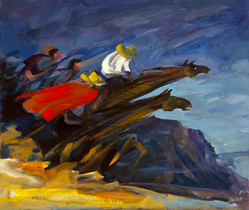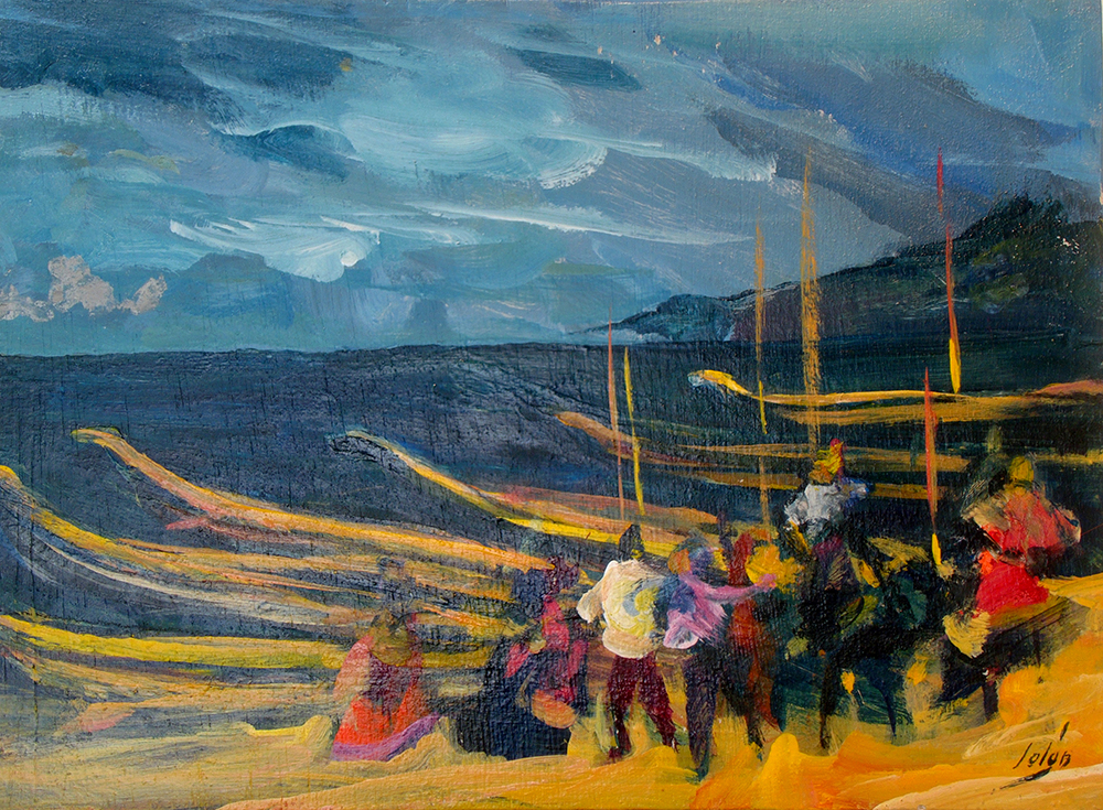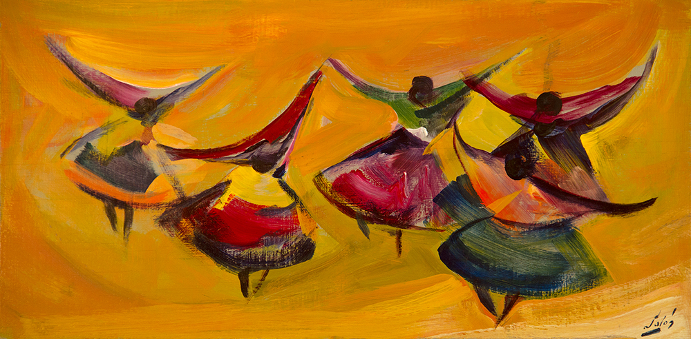 El encanto de la luz hecha color nos invita a jugar con las formas como quien limpia el pincel sobre un soporte cualquiera, para dejarnos un pedazo de sol brillante en un sinfín de colores, tonos y valores que nos evocan fugaces recuerdos del pasado. Al parecer, este fácil manejo del pigmento viene de muy lejos, de estar viendo en grande, en los murales, lo que en verdad es una realidad que cabe en el ala de una pequeña mariposa. Podía ser solo eso: una informe mancha sin alusión a nada, como ahora se acostumbra, pero he querido que sea un recuerdo, un pasaje de esta vida nuestra, en suma, fragmentos de tantos y tantos murales pintados.
