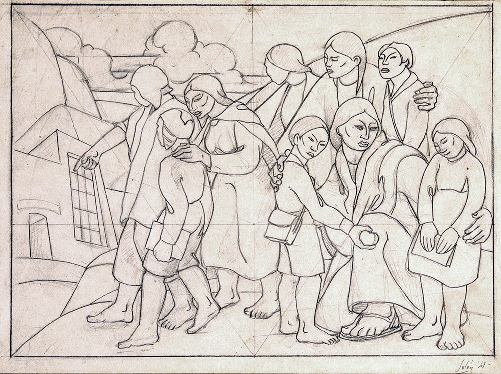 Solón began studying mural painting and graphic arts in early 1947. By the end of that year, he won the second prize for mural painting at the University of Chile. The following year he painted his first fresco at the Palacio de Bellas Artes in Santiago de Chile entitled «Bolivia: Absent See» and won the First Prize for Mural Painting from the University of Chile, and the First Prize of Honor for Foreigners in the Official Hall of 1948 in Santiago de Chile.